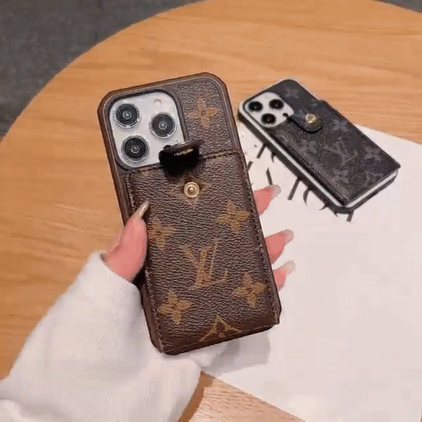 モノグラムのiPhoneケース(パース付き、ブラウン)は、スタイルと機能性を両立したアイテムです。エレガントなブラウンのデザインが特徴で、日常使いに最適。実用的なパース付きで、小物の収納に便利です。